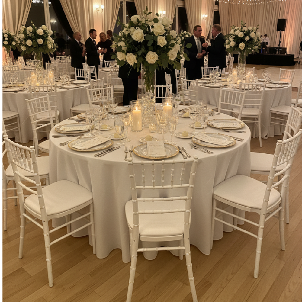 Su acabado brillante y su diseño tipo bambú la convierten en una opción ideal para salones de eventos, matrimonios, hoteles, restaurantes, terrazas o centros de convenciones. La silla Tiffany plástica reforzada ofrece una presentación impecable, adaptándose a distintos estilos decorativos, desde lo clásico hasta lo contemporáneo. Su color neutro realza cualquier ambiente y combina fácilmente con mantelería, flores o iluminación de eventos.